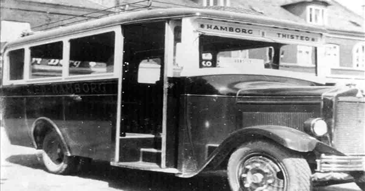 1930. Rutebilen Thisted-Hamborg af mærket Triangel på Nytorv