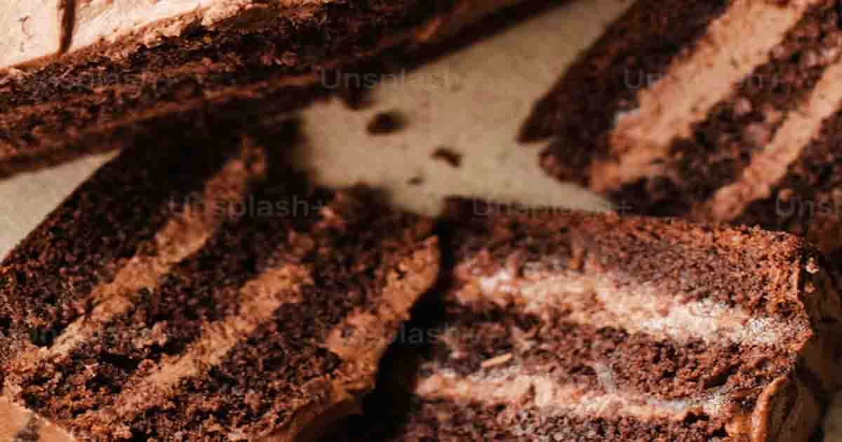 – Et stykke sandkage med marcipan og chokolade og revne, fintrevne, æblestykker i …