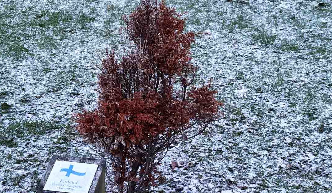 Hvilket møde? Thisted har fem venskabsbyer i Norden, og er det sådan, at den finske søjleenebærbusk ved Kystvejen i Nordens Lomme i dag er et vink fra kommunen? Den ser slemt medtaget, forkrøblet og nærmest uddød ud, det gjorde den ikke, da den blev plantet i 2019!