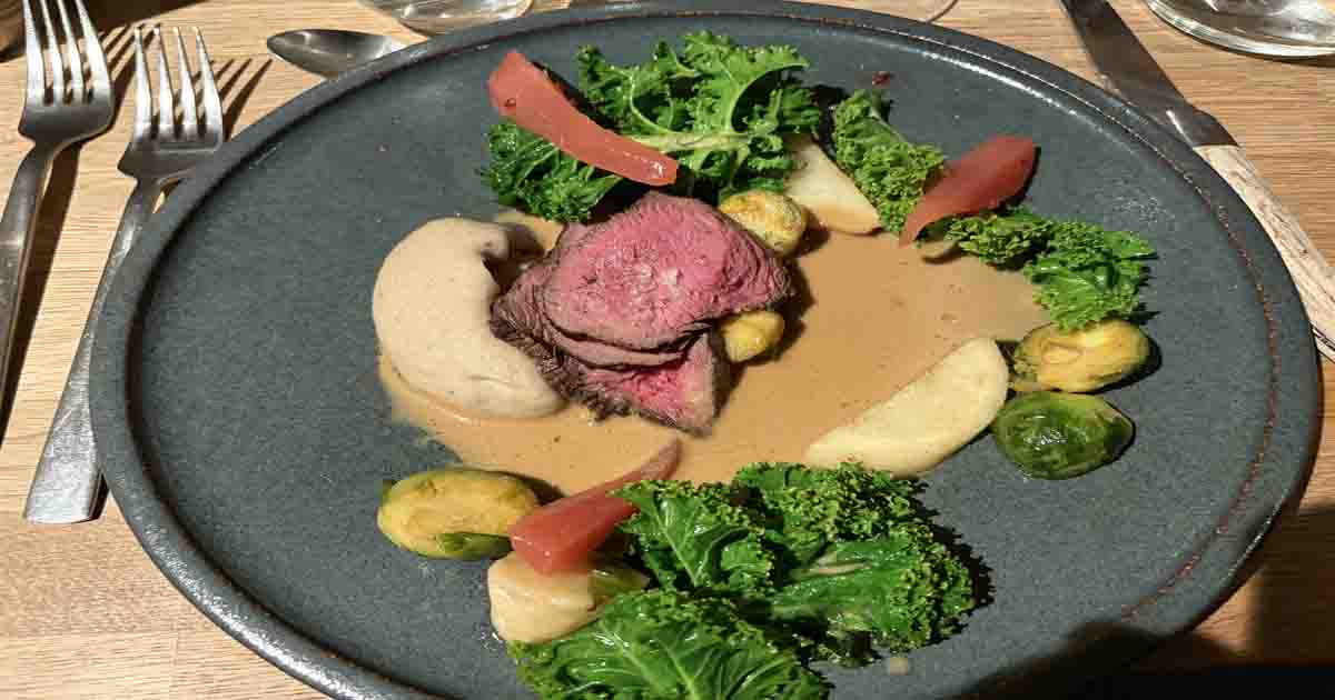 Hovedretten med mørt oksekød og godt med grønsager mættede. Der var intet menukort, og hukommelsen svigter, så I får ikke flere oplysninger!