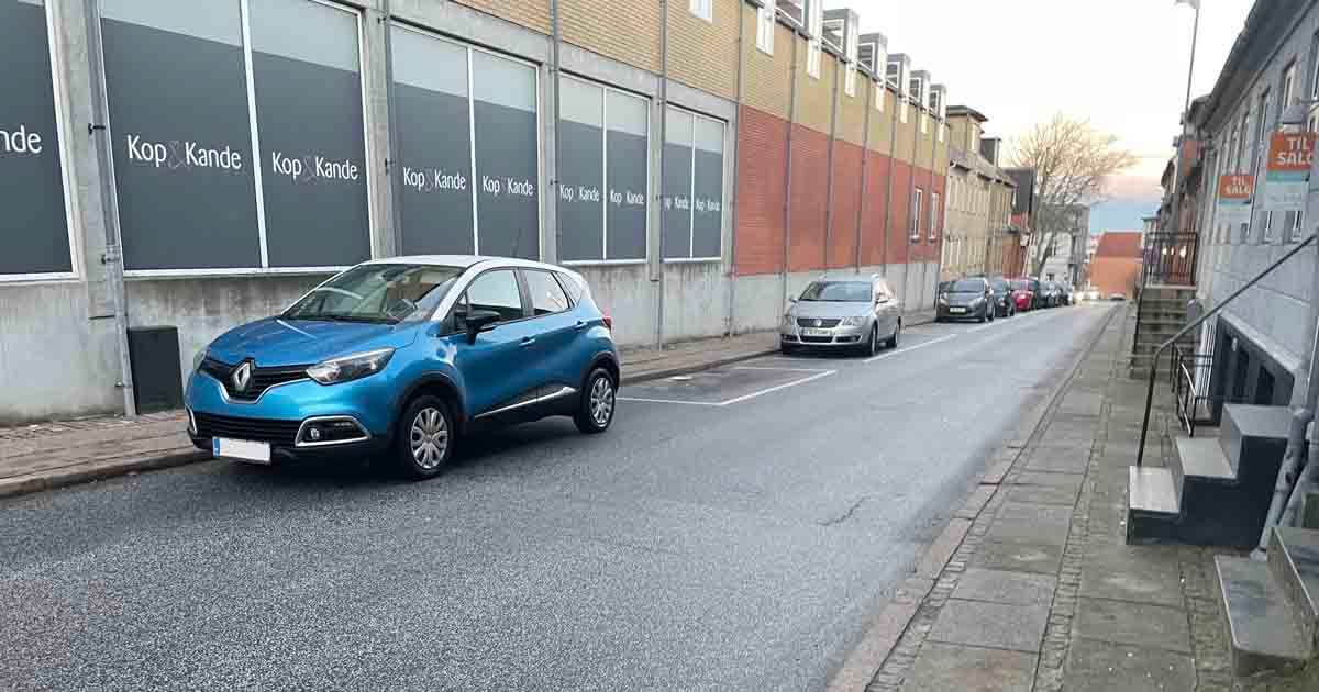 Det kan ske, at der ikke er plads i en p-bås. Så må man holde lidt udenfor.