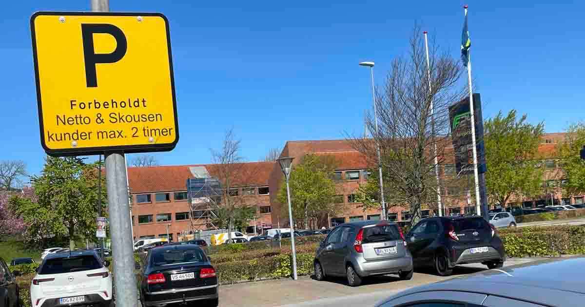 Netto og Skousen har et gult p-skilt. Det er altså hverken blåt eller sort, og hvad betyder det så? Jo, det står med sort tekst, så derfor … eller er det bare noget, de to har fundet på?